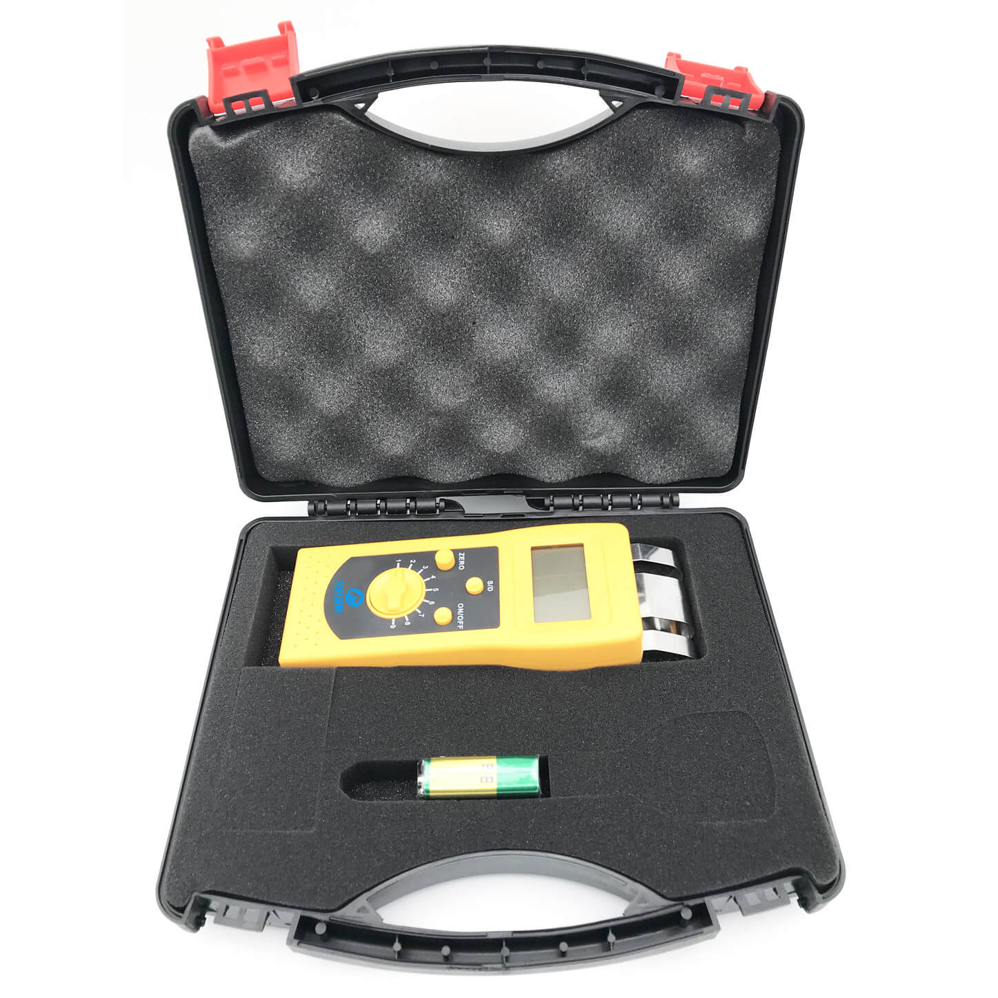 AKD-80C感應式水分儀檢測時只需將儀器前端的鷹爪式感應探頭貼在巖石表面,此時屏幕上就會顯示出水分值。這款儀器有10個檔位,每個檔位對應不同的物料,因此這款儀器除了可以測試巖石以為還能測試其他物料,例如:混凝土、地磚、墻面地面等。