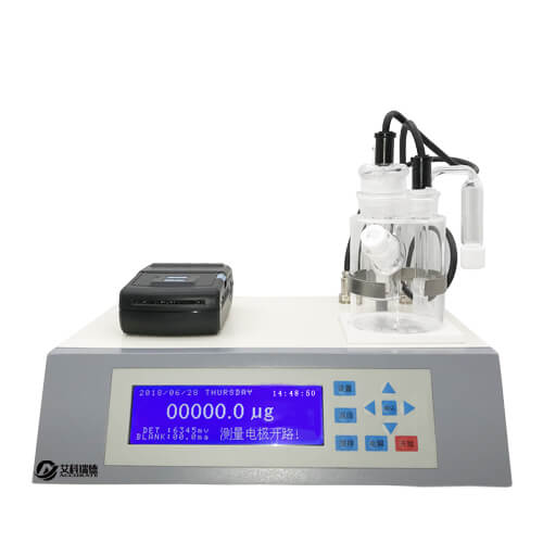 電極是水分測(cè)定儀的關(guān)鍵部件,電極表面的污染可直接導(dǎo)致靈敏度降低,有些電極長(zhǎng)期應(yīng)用于油質(zhì)樣品的分析,電極表面被油質(zhì)污染后,靈敏度降低,使得電極對(duì)終點(diǎn)的判斷遲鈍,造成卡爾-費(fèi)休試劑過量,終點(diǎn)反應(yīng)時(shí)溶液顏色偏深,此時(shí)須清洗電極。盡管肉眼看不到電極上的污染物,但可以觀察到反應(yīng)遲鈍,直接影響測(cè)量準(zhǔn)確性。因此電極使用一段時(shí)期以后須清洗,但是有相當(dāng)一部分操作人員沒考慮到這個(gè)問題。